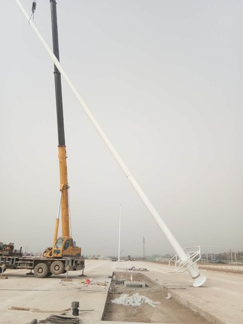 簡介—— 高桿燈施工過程陜西蘭光照明在寶雞市政道路上安裝高桿燈的案例寶雞高桿燈安裝效果圖