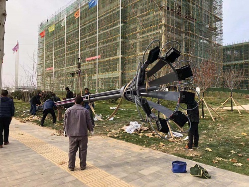 簡介—— 合陽市太陽能路燈施工完成效果圖陜西蘭光照明工作人員正在施工太陽能路燈在有條不紊的組裝過程中